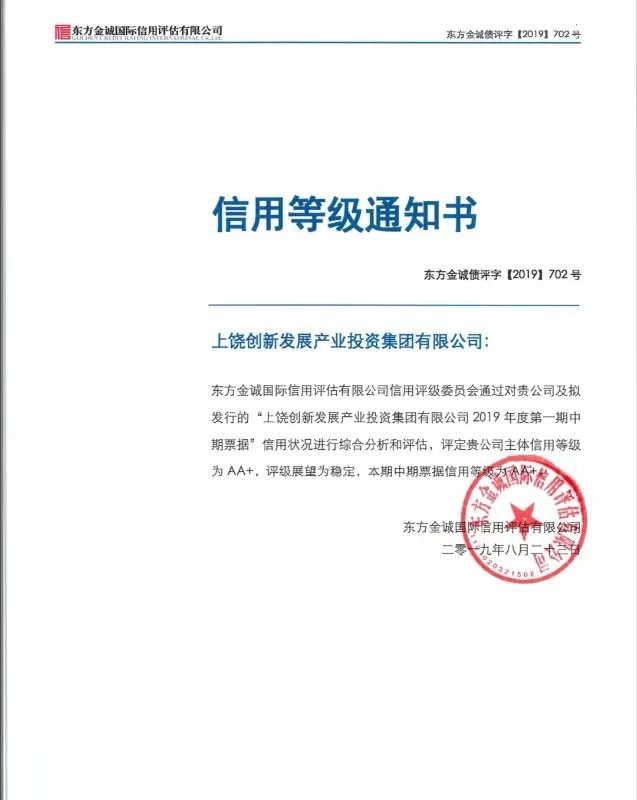 近日,記者從上饒創(chuàng)新發(fā)展產(chǎn)業(yè)投資集團有限公司獲悉,上饒創(chuàng)投集團通過國內(nèi)權(quán)威評級機構(gòu)東方金誠國際信用評估有限公司審定,喜獲AA+信用評級,評級展望為穩(wěn)定。 據(jù)悉,主體信用... [更多]