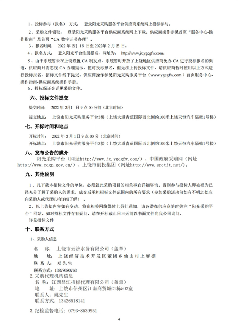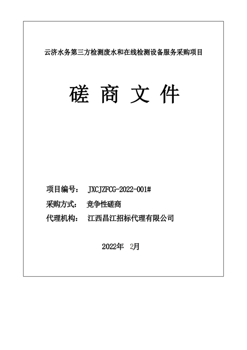 江西昌江招標(biāo)代理有限公司關(guān)于云濟(jì)水務(wù)第三方檢測(cè)廢水和在線檢測(cè)設(shè)備服務(wù)(項(xiàng)目編號(hào):JXCJZFCG-2022-001#)競(jìng)爭(zhēng)性磋商采購(gòu)公告