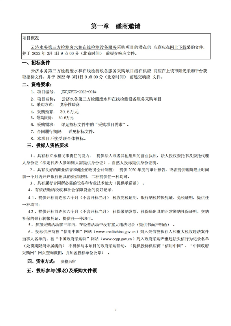 云濟(jì)水務(wù)第三方檢測(cè)廢水和在線檢測(cè)設(shè)備服務(wù)采購(gòu)項(xiàng)目磋商文件
