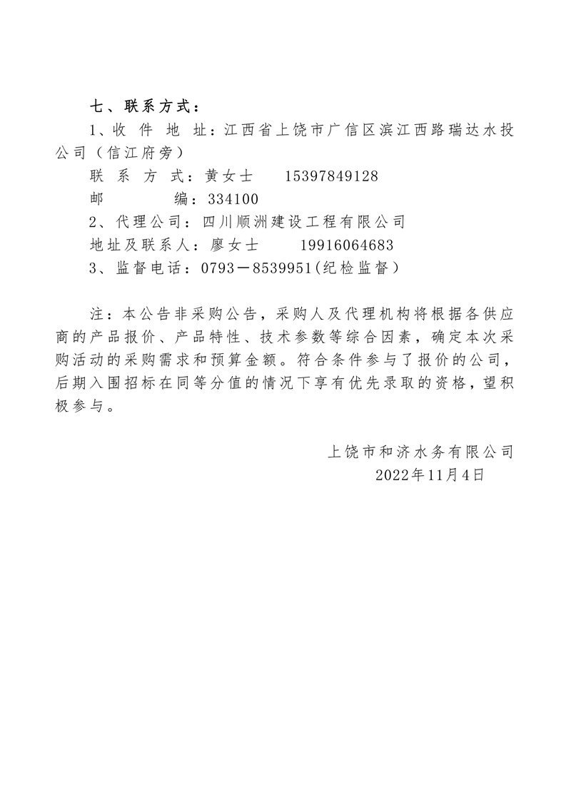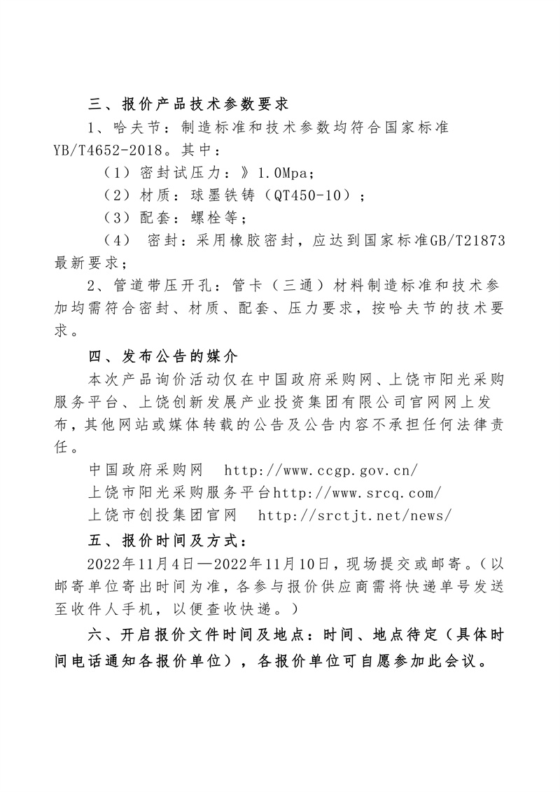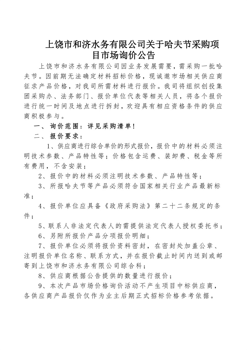 上饒市和濟(jì)水務(wù)有限公司關(guān)于哈夫節(jié)采購項目市場詢價公告