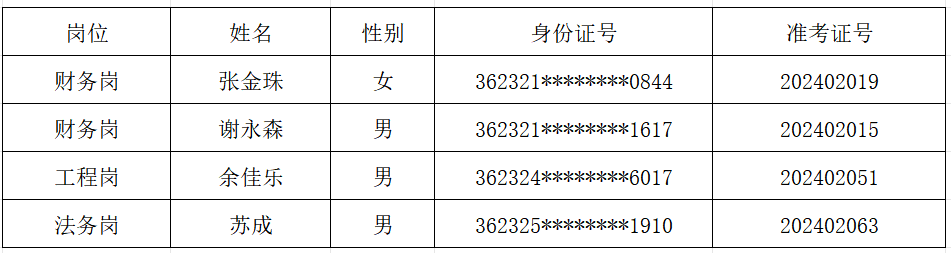 根據(jù)《上饒創(chuàng)新發(fā)展產(chǎn)業(yè)投資集團(tuán)有限公司公開(kāi)招聘公告》及相關(guān)要求,我司已按相關(guān)要求完成了筆試、面試等程序,現(xiàn)將擬錄取名單進(jìn)行公示,公示期5個(gè)工作日。若對(duì)公示內(nèi)容有異議,可在公示期內(nèi)反映,反映情況和問(wèn)題必須實(shí)事求是,應(yīng)簽署或告知真實(shí)姓名、工作單位、聯(lián)系方式,對(duì)線索不清的匿名信和匿名電話公示期間不予受理,聯(lián)... [更多]